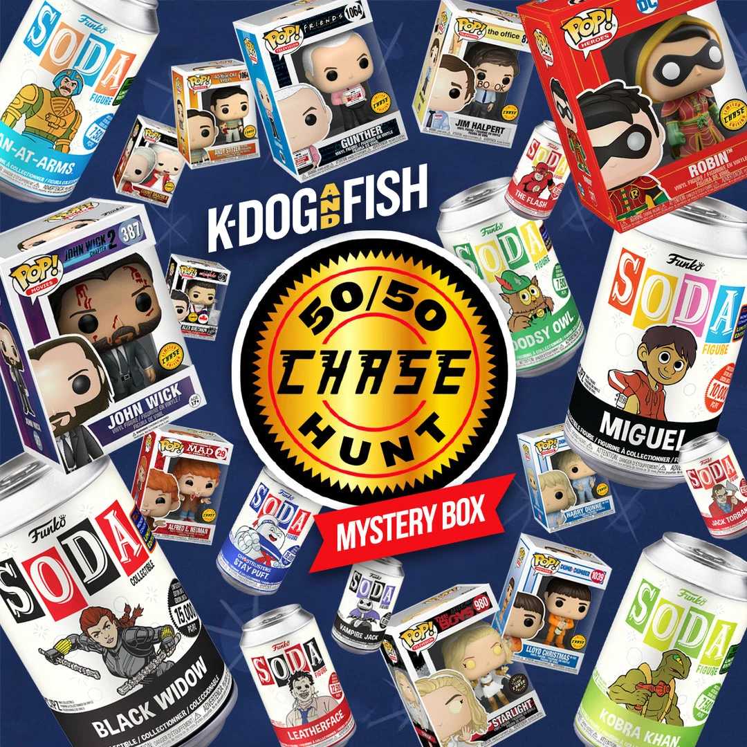 You get 1 Pop & 1 Funko Soda Can and 50% of the Mystery Boxes THAT POP IS A CHASE 😱 That’s right 50 out of 100 Mystery Boxes are Chases, but have no fear the other 50 Boxes it is an Exclusive! No Commons, No Sale Pops! Plus each Can has a 1 in 6 Chance at being a CHASE as well! Which makes this 50/50 Chase Hunt Mystery Box so exciting!