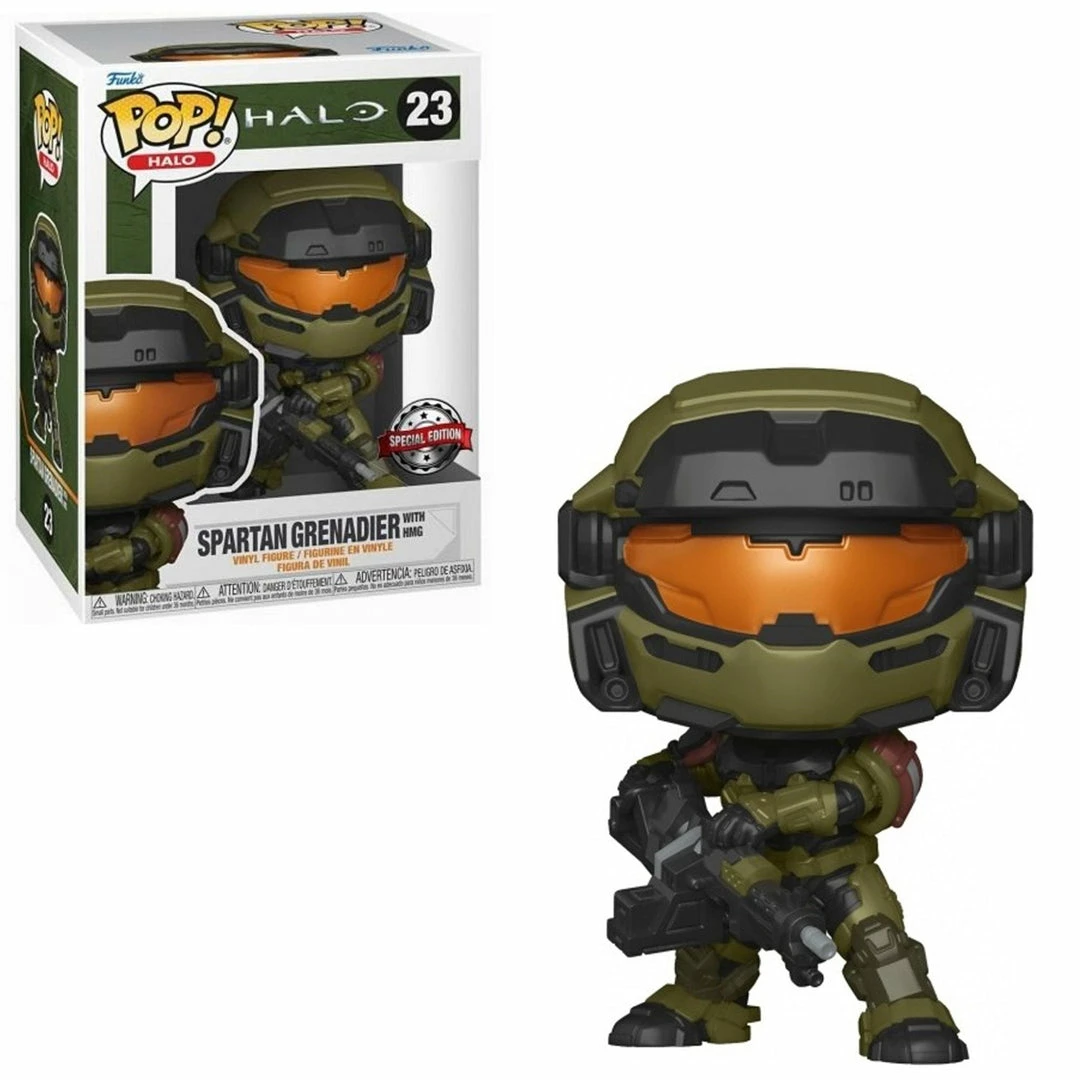 We also received limited quantities of the Spartan Grenadier with HMG (Noble Defender). Originally a Best Buy Exclsuive, our Boxes have the shared international Exclsuive sticker.