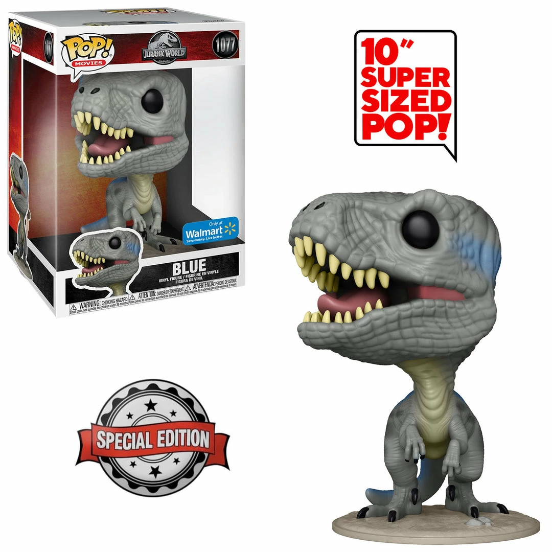 Don’t miss out on this Super-Sized 10″ BLUE from Jurassic World! Originally a Walmart Exclusive, please note our Boxes have the international shared Exclusive Sticker!