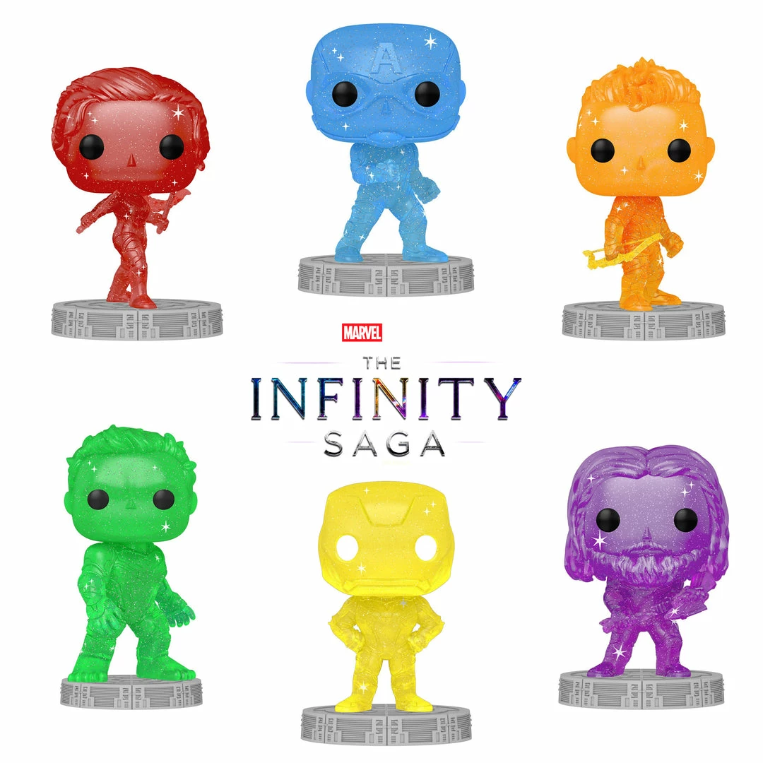 Funko just announced a brand new wave of Marvel Artist Series Pops representing ALL 6 Colours of the infinity Stones 😱 This is insanely cool! The set includes Black Widow (Red), Captain America (Blue), Hawkeye (Orange), Hulk (Green), Iron Man (Yellow) and Thor (Purple). Each comes in it’s on plastic hard stack Pop Protector! Get your favourite Infinity Saga Characters individually or buy the entire SET and SAVE!