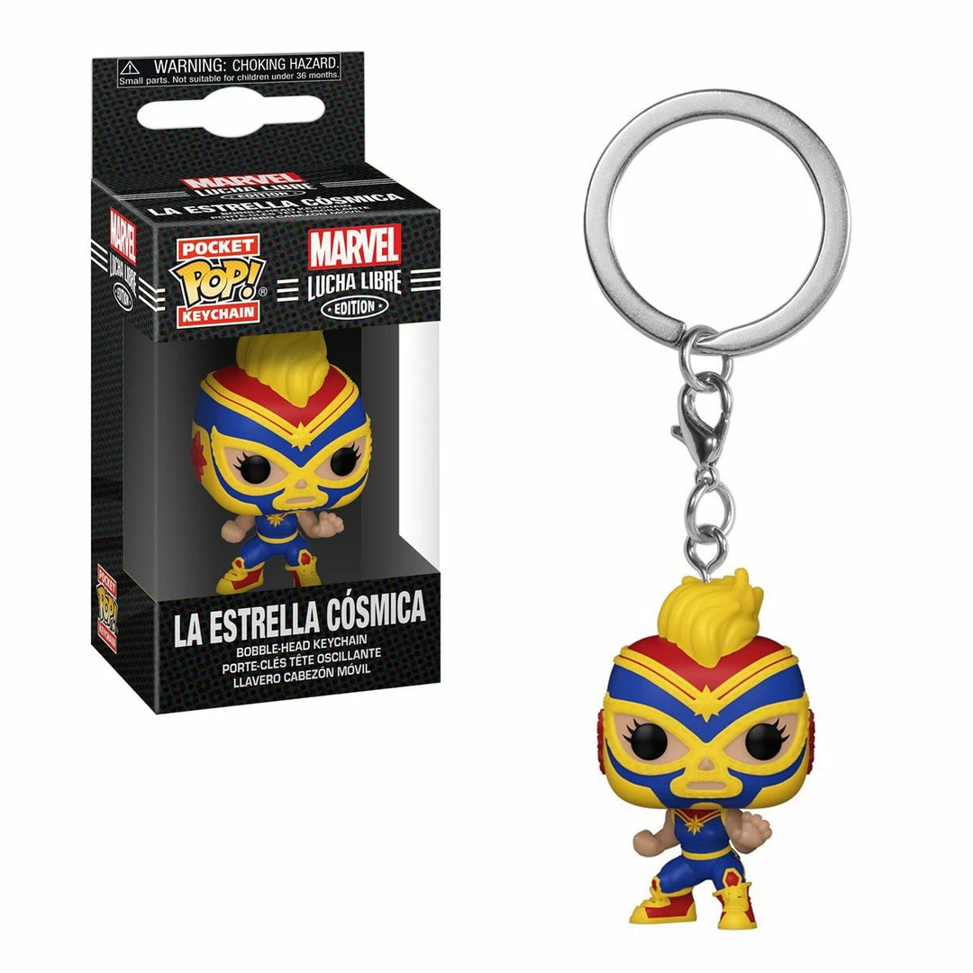 K-Dog & Fish POCKET POP KEYCHAIN – MARVEL LUCHA LIBRE EDITION: LA ESTRELLA COSMICA (CAPTAIN MARVEL)
