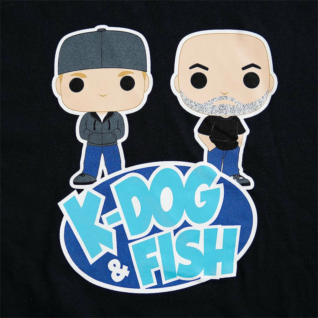 K-Dog & Fish T-Shirts are 100% Cotton, in a solid Black with our wicked YouTube Logo of us as Pops!